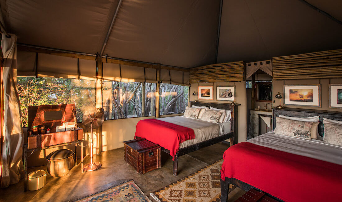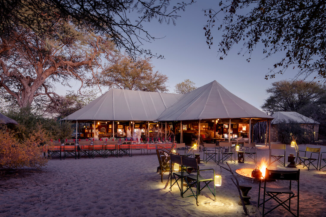 At just under two hours by road from Maun, Meno is a good option if you’re travelling as a group, or with little ones (or even big ones!). The camp was originally used by Southern Africa’s legendary explorers, and although a few little touches and fun quirks have been added, it’s refreshingly and stylishly simple. And actually, the real treat at Meno is the connection with nature; when an elephant provides your alarm call in the morning, and you can game view straight from your private veranda, nothing else really matters.