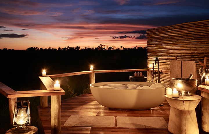 Named after the 19th-century explorer and painter Thomas Baines, this is Sanctuary’s smallest camp within Botswana, home to just six luxurious suites set on elevated platforms in the tree line, and with wooden decks that offer expansive views over the permanent water of the Boro River and a lagoon teeming with life. With star baths and sky beds on your private deck, this is a romantic oasis.