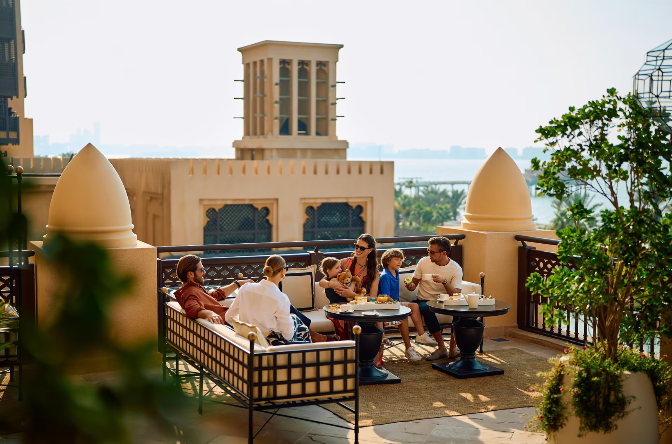 Share memorable moments in a spacious residence with family and friends. Two bedrooms with dressing areas and two Arabian-styled bathrooms with a walk-in rainfall shower and separate marble bathtub can accommodate a combination of up to 5 adult(s) and 2 children from age 11.
