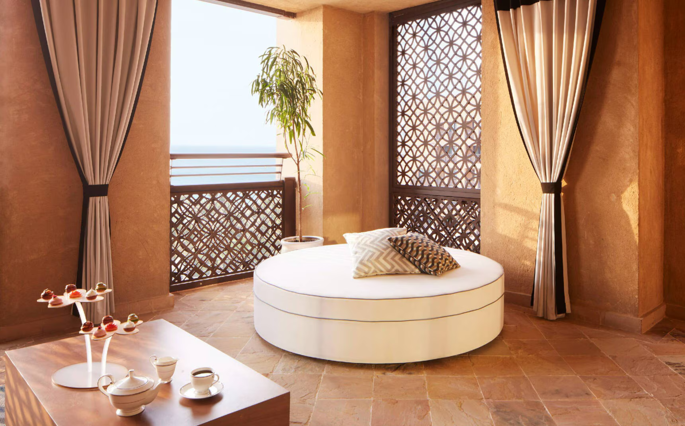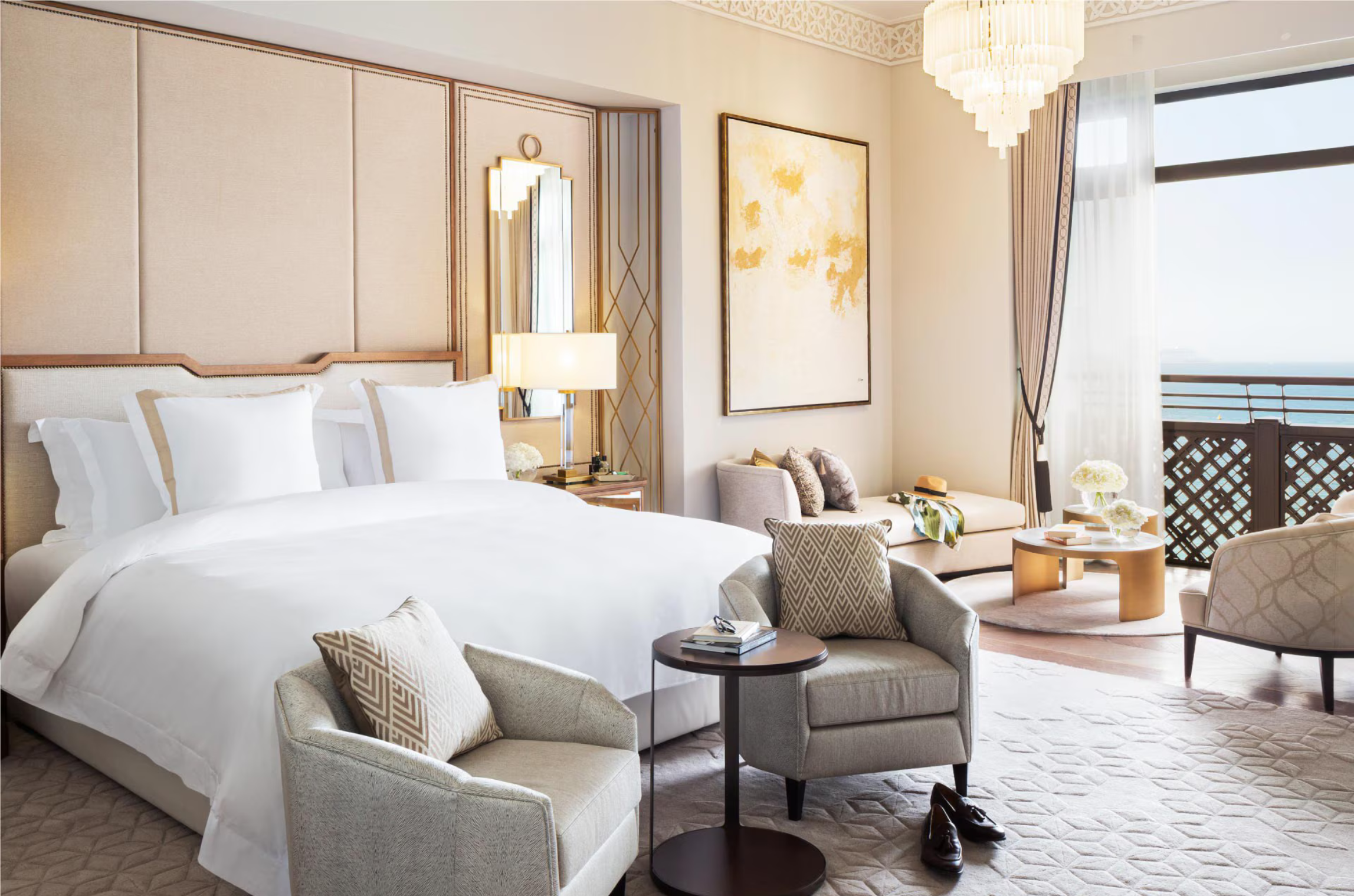Uncover the treasures of Arabia in this idyllic 99 sqm suite with sweeping sea views. With a 38 sqm balcony, a lavish bedroom, extensive living room, marble bathroom and private powder room.