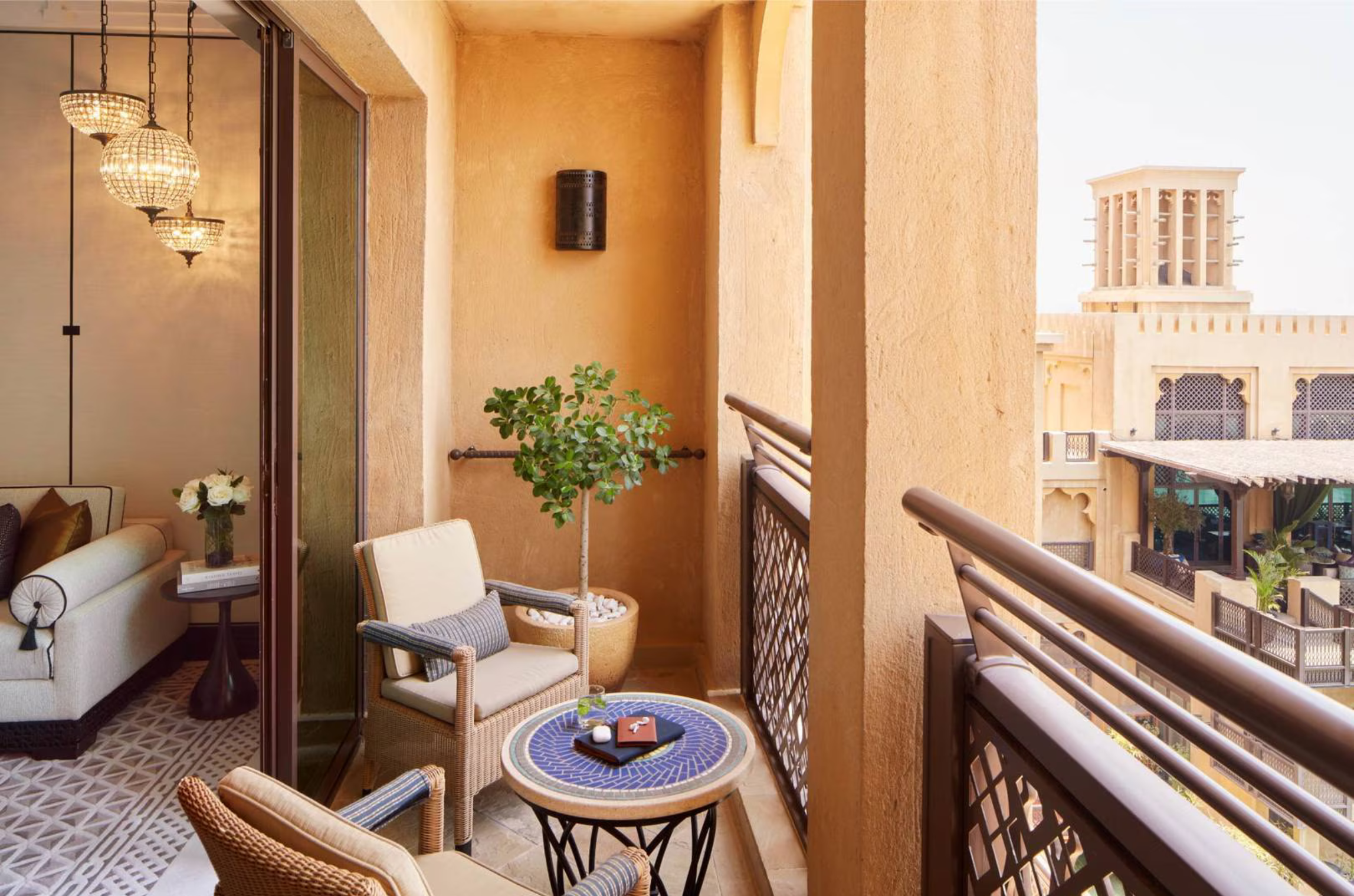 Stylish living with uninterrupted views of Burj Al Arab. 98 sqm – with a 19 sqm balcony. Features a lavish bedroom, extensive living room, marble bathroom, two private balconies and private powder room. Includes access to The Amal Lounge (exclusive access for suite guests).