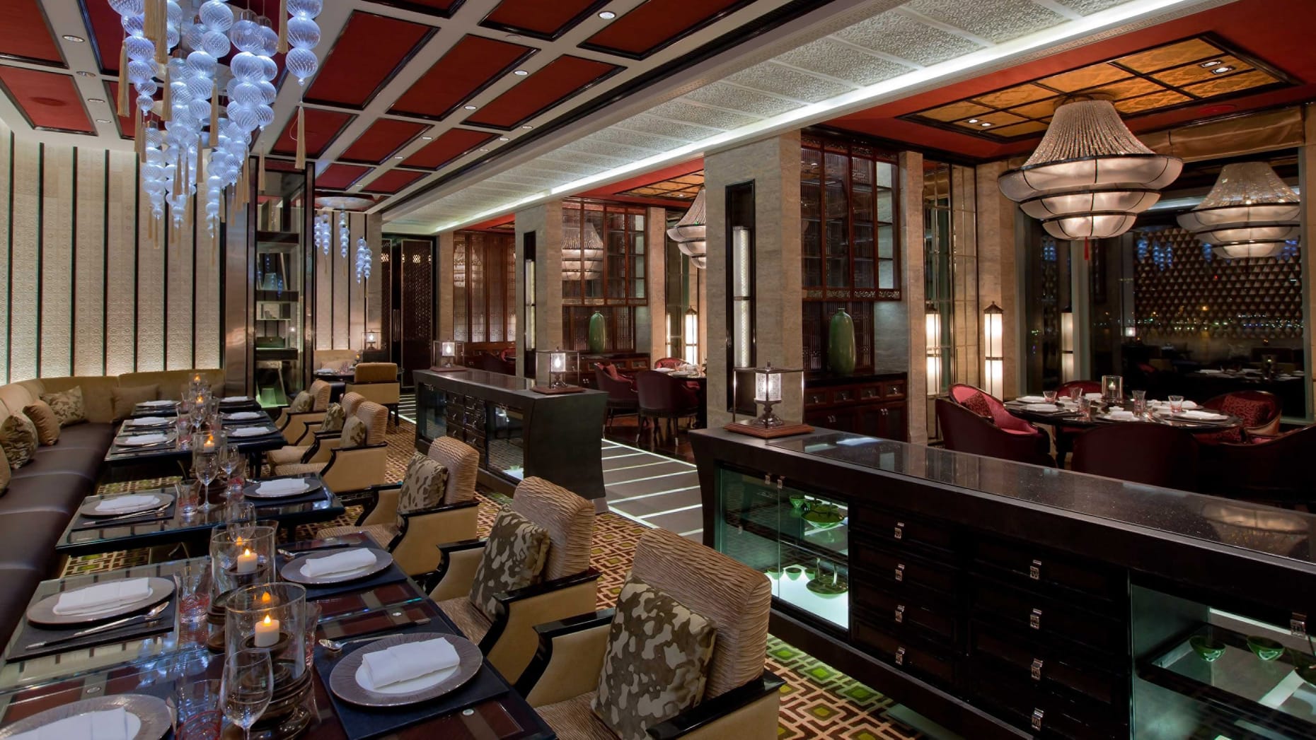 Designed by renowned French interior designer Pierre-Yves Rochon and boasting the blue and green hues of the landscapes of Lebanon, Byblos introduces modern interpretations of classical Lebanese cuisine prepared in a contemporary setting. Freshness, quality and authenticity invite you to experience taste, sight, sound and touch through its cuisine.