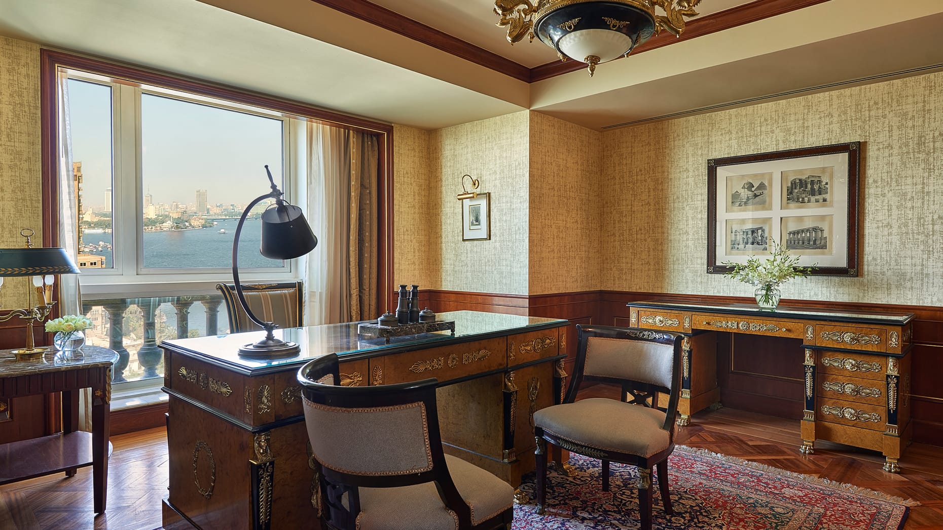 With polished hardwood floors and eye-catching views of the Nile, pyramids and Botanical Gardens, these three-bedroom suites easily adapt to your travel style, with plenty of room for lavish parties to intimate movie nights or impromptu meetings in the private study. This 278 m2 suite on the 12th or 14th floor can accommodate up to nine adults. Also features a stunning private bar and adjacent kitchen.