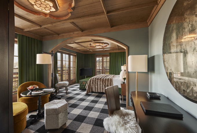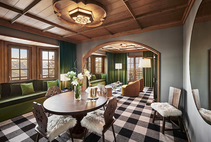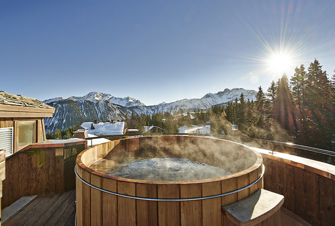 The spacious rooms and suites are gorgeously warm homes, hurry off snowy slopes to plump on the bed and be enveloped in drifts of softness, luxuriant furs and cosy plaids. The penthouse and chalets are designed to a level beyond luxury, offering a rooftop hot tub or private spa.