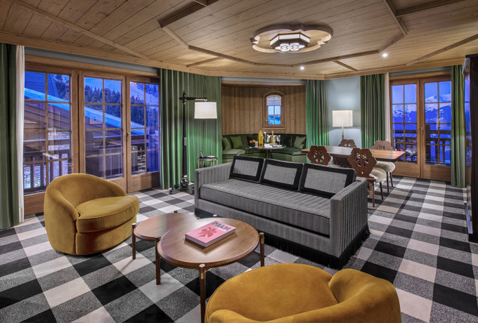 L’Amarante and L’Alpensia offer the finest French hospitality and the intimacy of a stylish home. Arranged over five floors and directly connected to the hotel, the two chalets blend the comfort and seclusion of an exquisite private home with all the advantages of a five-star hotel in Courchevel 1850. Extraordinarily spacious, they offer each 5,920 square feet of discreet luxury – with five bedrooms, seven bathrooms and a lift – all finished in a modern, colourful style by celebrated Parisian designers India Mahdavi and Joseph Dirand. For private leisure, they feature a spa, home cinema and stunning views of the surrounding mountains and the famous 3 Vallées from their unique vantage point at the top of the former Olympic ski jump. A butler and private chef (on request) remain at your disposal to ensure the most restful and enjoyable time for you and your family. All the exclusive services of L’Apogée Courchevel – with its swimming pool, spa, boutiques and restaurants – are steps away, and there is a private conveyor belt to whisk guests straight back from the chalet’s ski-in/ski-out facility.