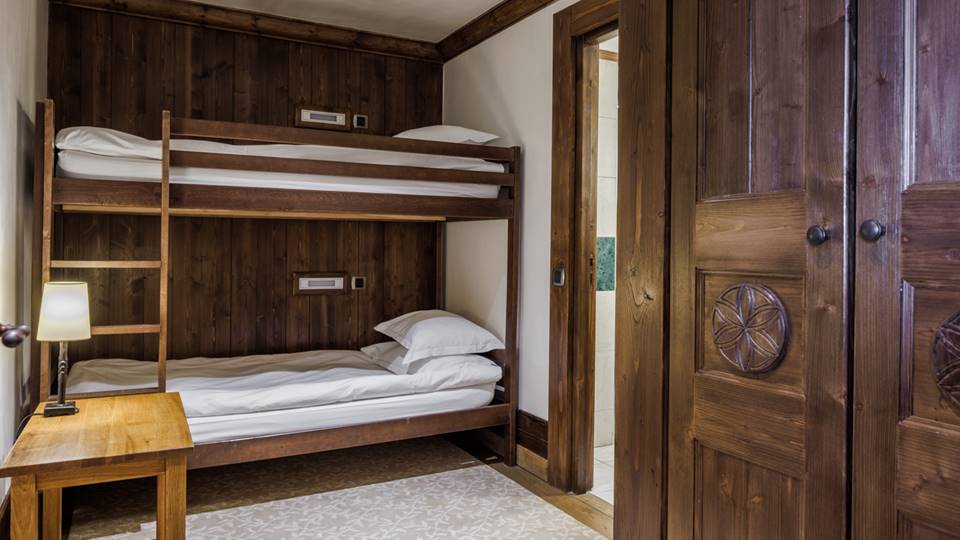 Designed with family in mind, the Family Piste View rooms have a spacious sitting area and an oversized main bedroom with sitting area, en-suite bathroom and a kids bedroom leading off the main room complete with bunk beds and en-suite shower!