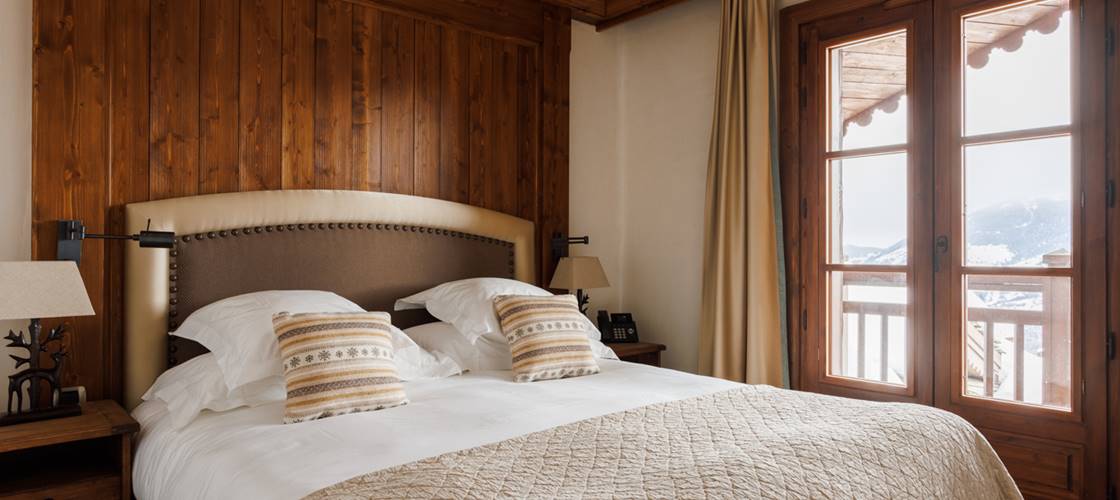 Peaceful with the majestic charm of the mountains from your window, Valley View rooms deliver stunning views of French Alps across Courchevel Moriond. Each Valley View room has a king-size bed and en-suite bathroom.
