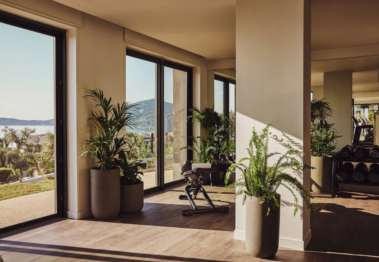 State-of-the-art and fully equipped, PALS gym may offer one of the most unique workouts. Designer pottery with ferns and local exotic flora renews the oxygen naturally, as floor-to-ceiling windows offer stunning views of the Ionian coastline. Engage in extensive fitness Mobility & Flexibility Sessions, Yin and Vinyasa Yoga, Pilates, and more, as you reconnect body, mind, and spirit with nature and reactivate the will to achieve your fitness goals.