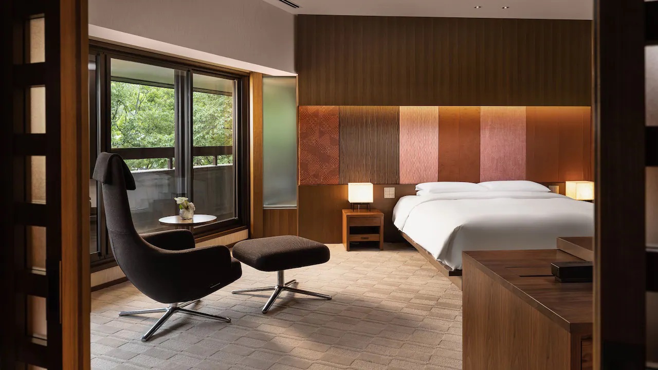 187 guest rooms and suites—all non-smoking—seamlessly combine Japanese comforts and traditions with the customary amenities of a modern hotel. Adorned with framed works of antique kimono fabric, the serene residences are furnished with softly lit paper lanterns, low-slung beds, and deep tubs for a relaxing soak—a blissful dose of daily comfort that’s highly valued in Japan. 60-square-meter Deluxe Balcony rooms and all suites feature oversized wooden baths of fragrant Japanese cypress.