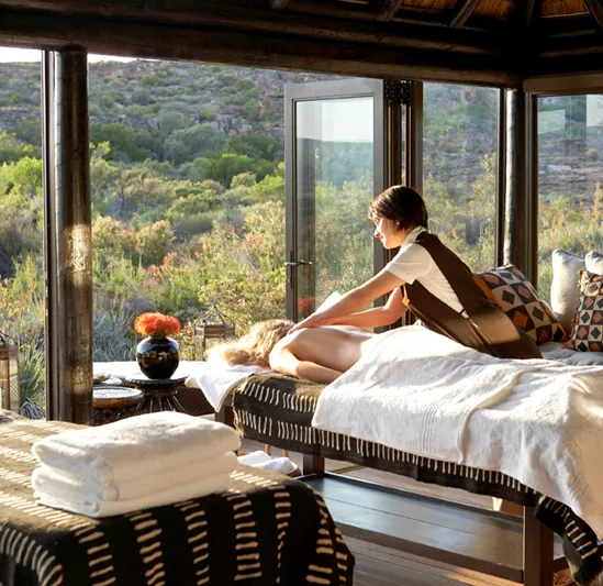 Set overlooking lush indigenous gardens, where crystal-clear swimming pools offer respite from warm summer days, the seven Luxury Rooms are each individually decorated, with a private terrace delivering wonderful views out over the reserve.