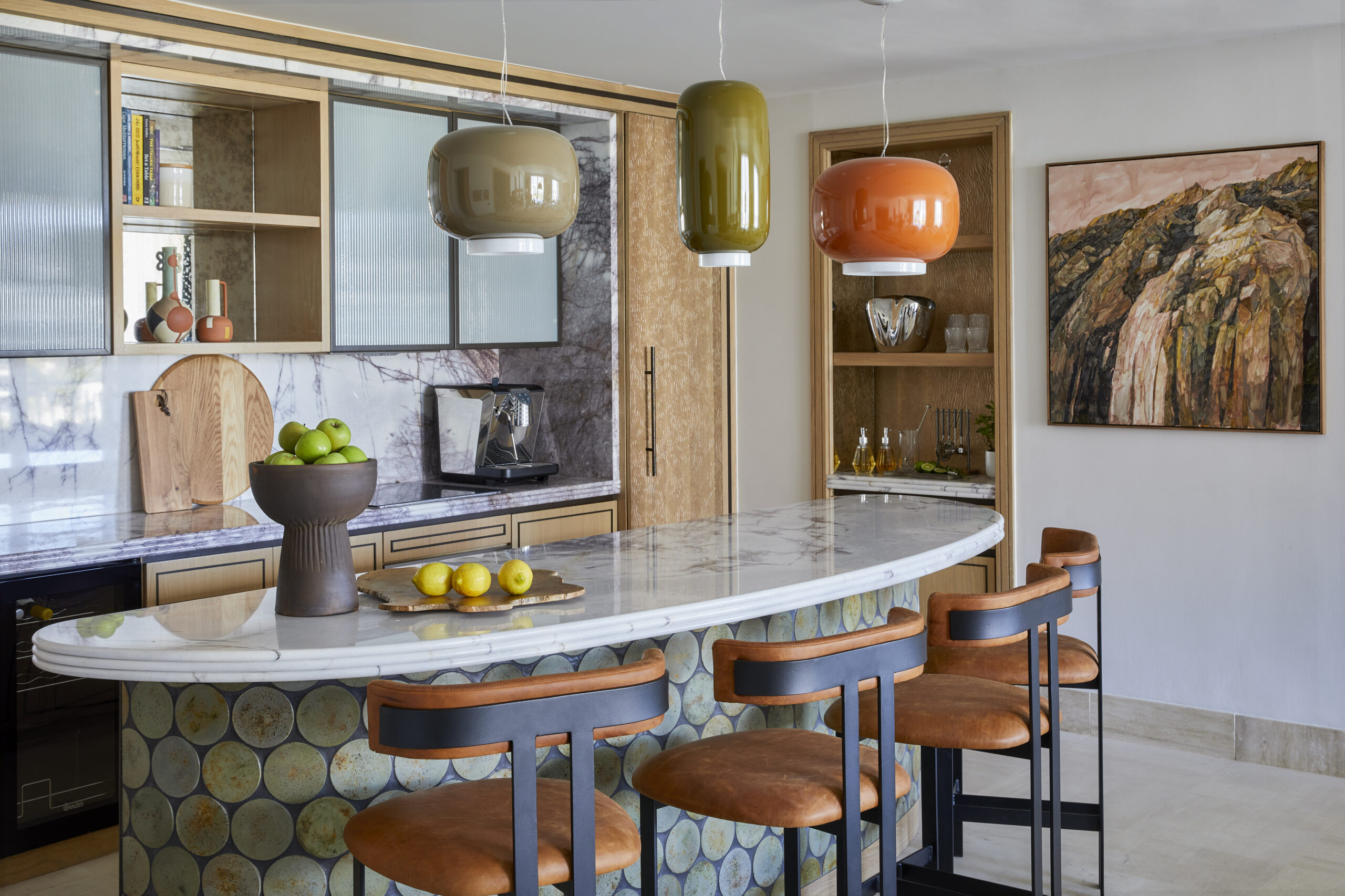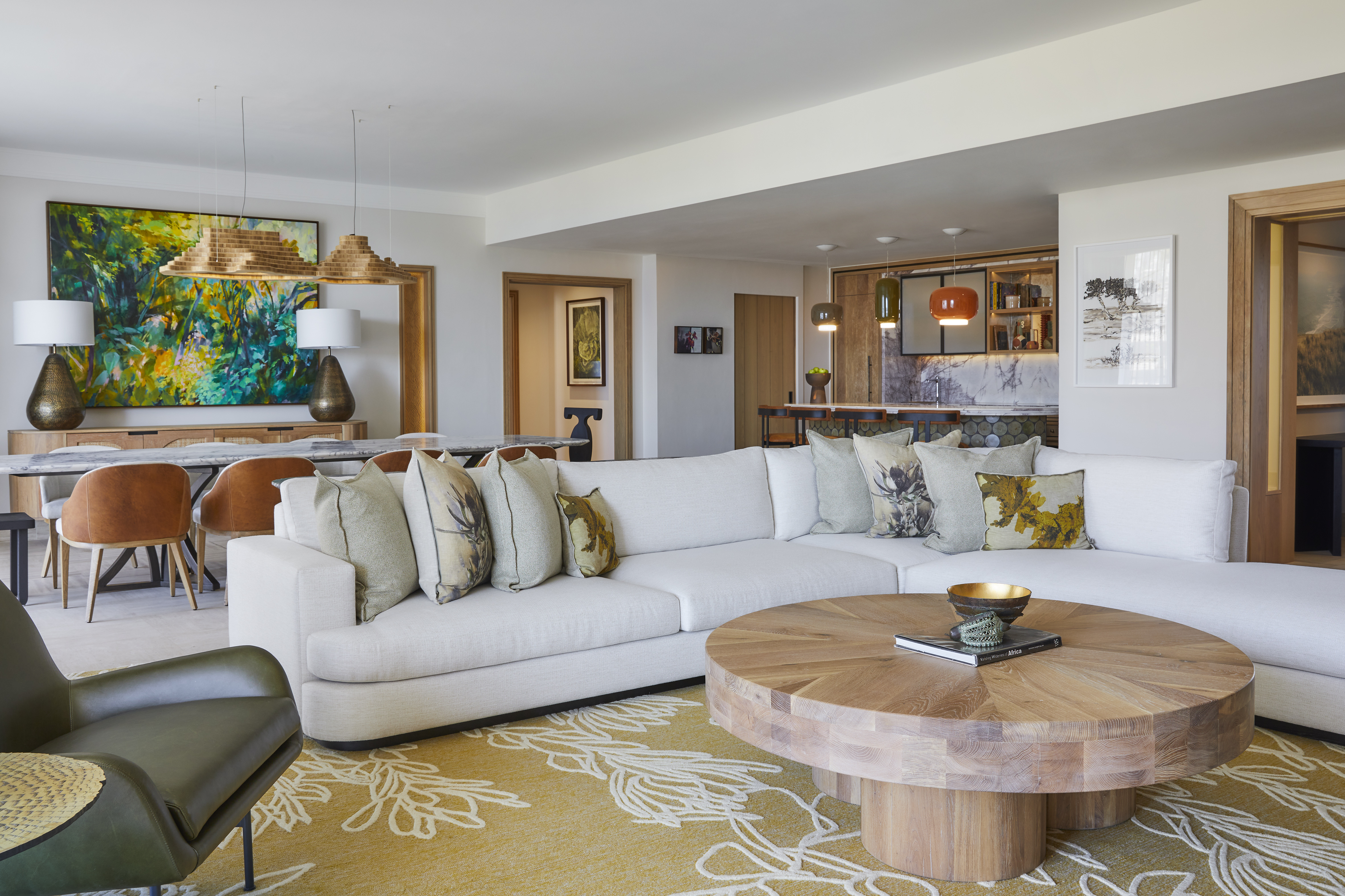 The Table Mountain Suite features large master bedroom, dramatic interiors, a generous dining room and exceptional living spaces. Boasting the resort’s most stunning views of Table Mountain, visible even from your over-sized soaking tub, you will be immersed in the vibrancy of Cape Town. The stone-top bar and built-in private cocktail station draws on the more earthy tones of olive, burnt orange and brown to seamlessly blend into a usable work of art.