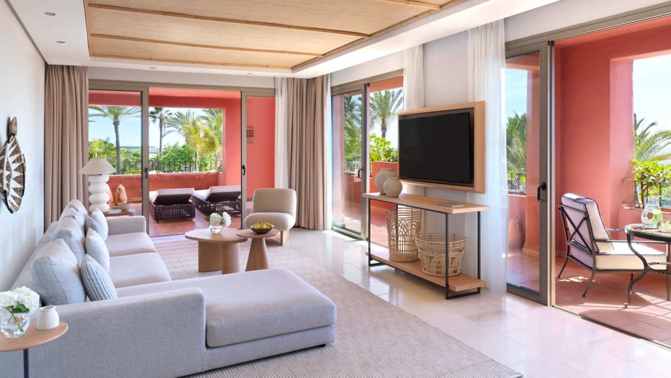 The 60sqm Citadel Junior Suite features one King bed, a balcony with an ocean or resort view, a living/sitting area, a dining area, WiFi and a coffee/tea maker.
